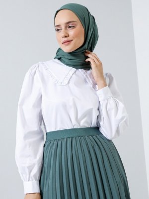 Benin Beyaz Büyük Yakalı Pamuklu Bluz