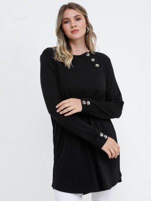 Alia Siyah Yakası Düğme Detaylı Tunik