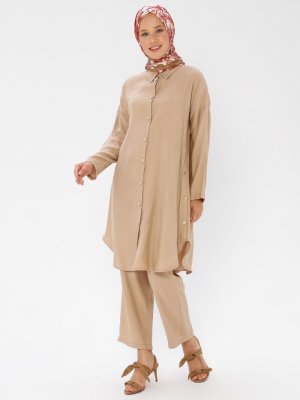 Panaline Taş Düğmeli Tunik&Pantolon İkili Takım