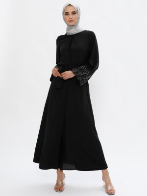 Filizzade Siyah Kolları Pul İşlemeli Ferace