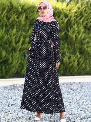 Lazeyn Siyah Beyaz Desenli Gömlek Elbise