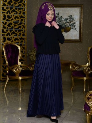 Night Blue Collection Lacivert Çizgili Etek