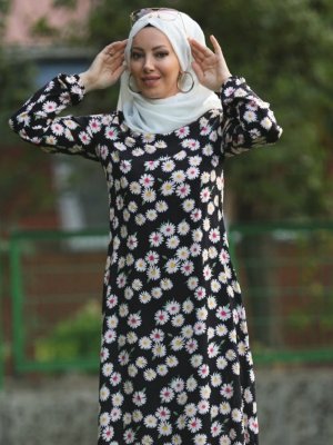 Esra Üstün Siyah Çiçek Desenli Elbise