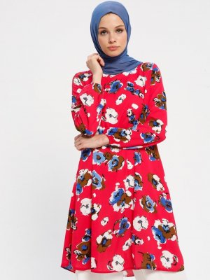 Ginezza Fuşya Mavi Çiçek Desenli Tunik