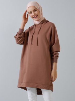 Benin Soğuk Kahve Kapüşonlu Spor Tunik
