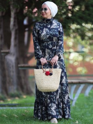 Esra Üstün Siyah Çiçekli Elbise