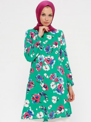 Ginezza Yeşil Fuşya Çiçek Desenli Tunik