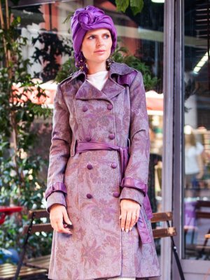 Tesse Gri Mürdüm Düğmeli Kaşe Kaban