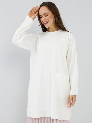 Everyday Basic Ekru Doğal Kumaşlı Cep Detaylı Tunik