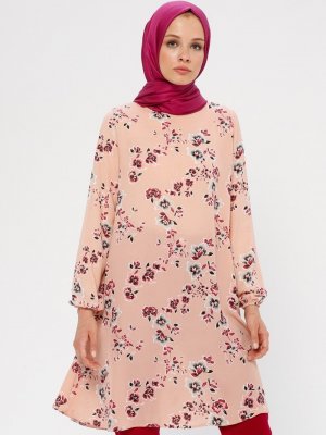 Ginezza Pudra Yavruağzı Çiçek Desenli Tunik