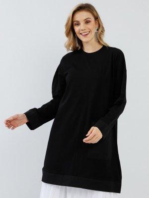 Everyday Basic Siyah Doğal Kumaşlı Cep Detaylı Tunik