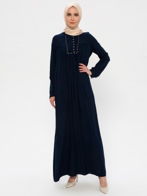 Ginezza Lacivert Nakışlı Elbise