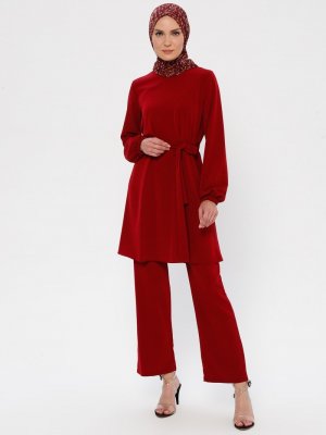 Ginezza Koyu Kırmızı Tunik & Pantolon İkili Takım