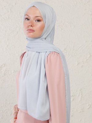 Tuva Şal Gümüş Gri Çift Kat Janjan Abiye Şal