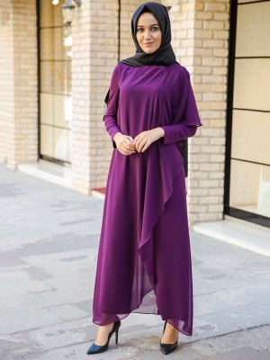 Gizem Kış Mürdüm Şifon Detaylı Tulum