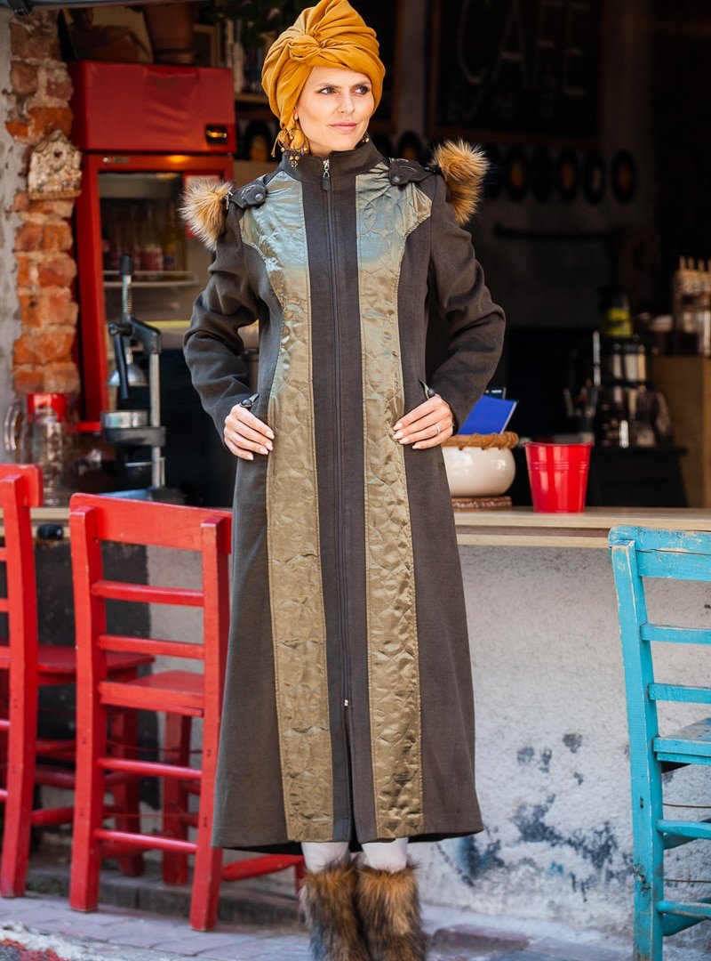 Tesse Haki Fermuarlı Kaşe Kaban