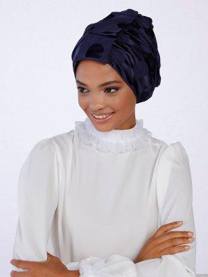 Halima X Modanisa Lacivert Puantiyeli Almira Hazır Türban