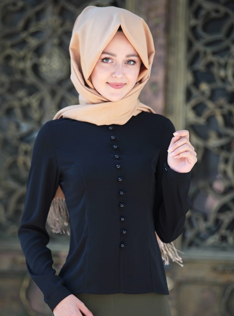 Nurkombin Siyah Düğmeli Bluz