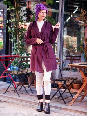 Pardesü Dünyası Bordo Kemerli Hırka