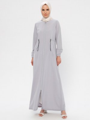 Ginezza Gri Drop Baskı Detaylı Ferace