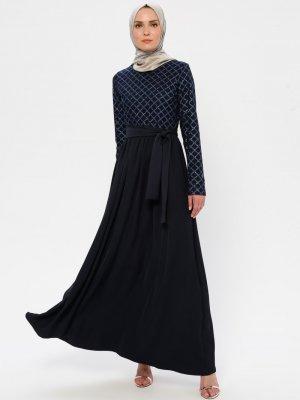 Filizzade Lacivert Simli Abiye Elbise