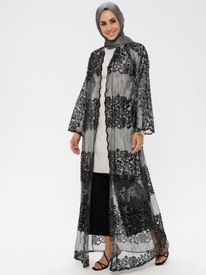 ModaNaz Gri Dantel Ferace