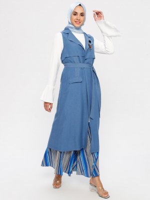 Puane İndigo Volanlı Tunik&Broşlu Kap İkili Takım