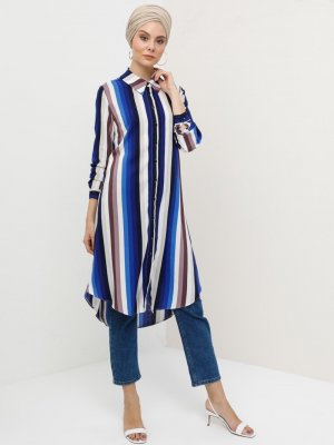 Tavin Mürdüm Mavi Düğmeli Tunik