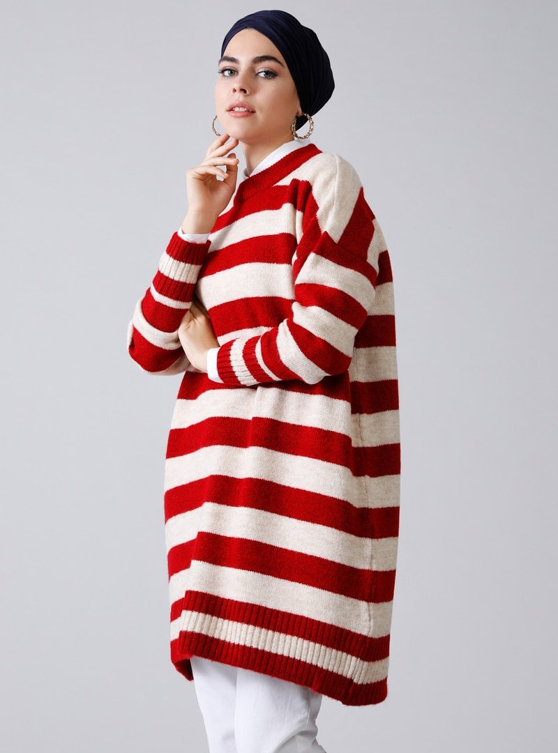 Refka Nar Çiçeği Çizgili Triko Kazak