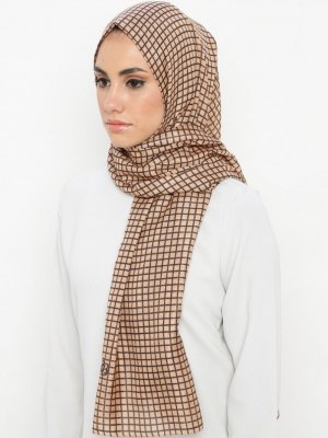 Renkli Butik Eşarp Renkli Butik Desenli Şal Bej