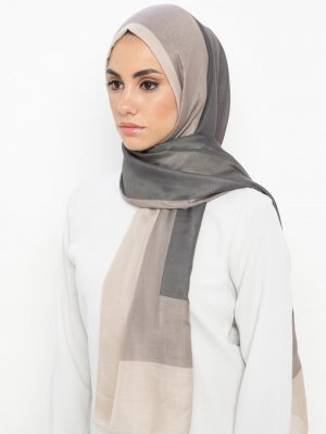 Renkli Butik Eşarp Renkli Butik Desenli Şal Gri