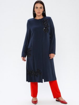 Hanımsa Lacivert Gizli Fermuarlı Nakışlı Tunik