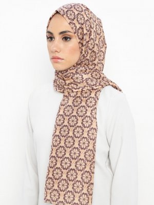 Renkli Butik Eşarp Renkli Butik Desenli Şal Bej