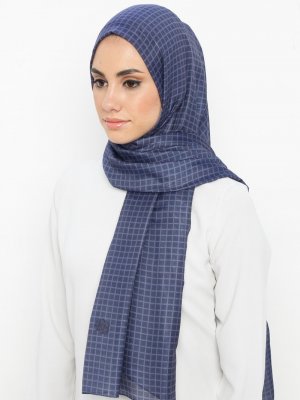 Renkli Butik Eşarp Renkli Butik Desenli Şal İndigo