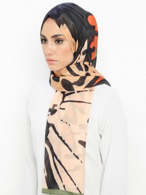 Renkli Butik Eşarp Renkli Butik Desenli Şal Kahve