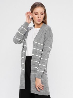 Zentoni Koyu Gri Ekru Çizgili Triko Hırka
