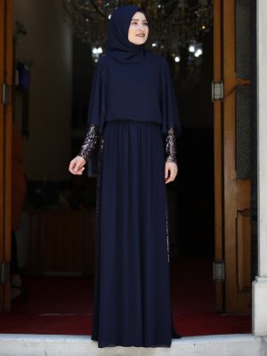 Rana Zenn Lacivert Güneş Abiye Elbise