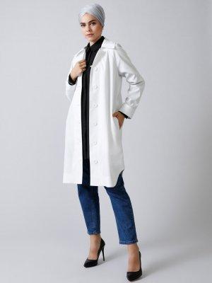 Refka Beyaz Cep Detaylı Uzun Ceket