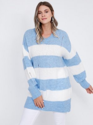 Alia Bebe Mavisi Çizgili Triko Tunik