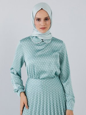 Benin Mint Bebe Yakalı Puantiyeli Bluz