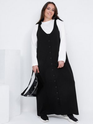 Alia Siyah Ekru Pamuklu Bluz&Elbise İkili Takım