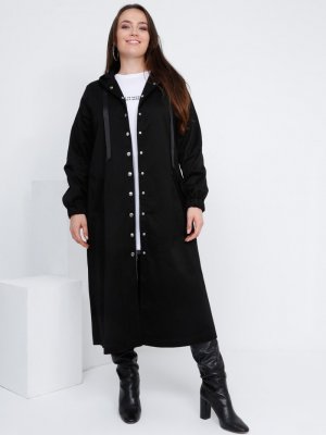 Alia Siyah Doğal Kumaşlı Çıt Çıtlı Kapüşonlu Kap