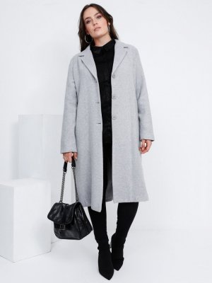 Alia Açık Gri Düğmeli Kaşe Kaban
