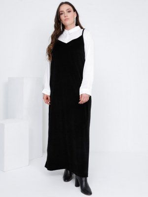 Alia Siyah Askılı Kadife Elbise
