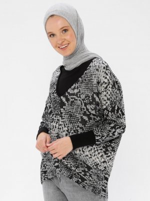 Nisan Triko Gri Yılan Derisi Desenli Asimetrik Triko Kazak