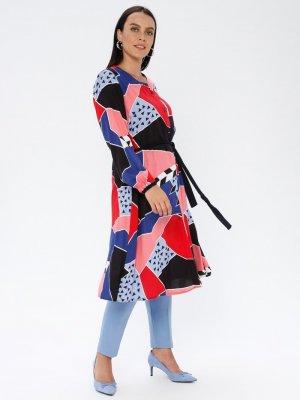 GELİNCE Saks Mavisi Çok Renkli Desenli Tunik