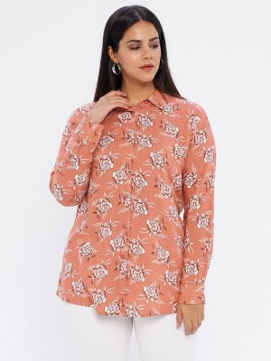 GELİNCE Yavruağzı Çiçek Desenli Gömlek Tunik