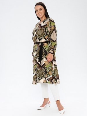 GELİNCE Yeşil Çok Renkli Desenli Tunik