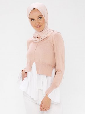 Nisan Triko Pudra Kontrast Renkli Triko Kazak