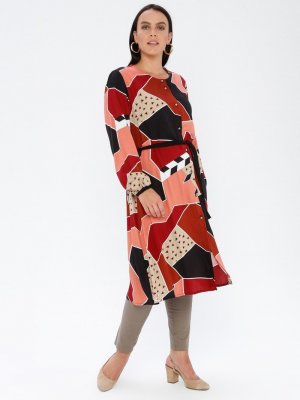 GELİNCE Bordo Çok Renkli Desenli Tunik